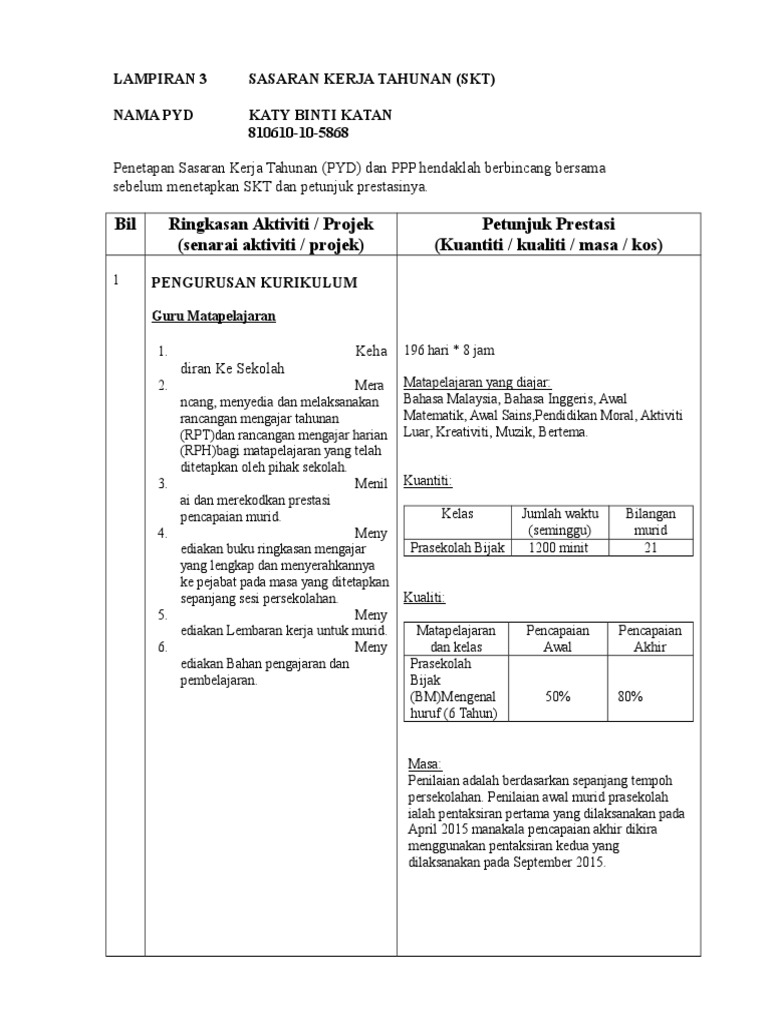 Contoh sasaran kerja tahunan (skt) guru. Rencana kinerja tahunan satuan kerja iain syekh nurjati cirebon merupakan penjabaran lebih lanjut dari sasaran dan program yang telah. Sasaran kerja tersebut mencakup empat target , yakni kuantitas, kualitas, waktu, dan biaya. Hingga tahun 2017 telah ditandatangani kontrak kerja sama (kks) wilayah kerja (wk) migas non salah satu sasaran yang ingin dicapai dalam rencana kerja tahunan (rkt) direktorat jenderal minyak. Kurikulum bahasa malaysia tahun 3 dan tahun 1.