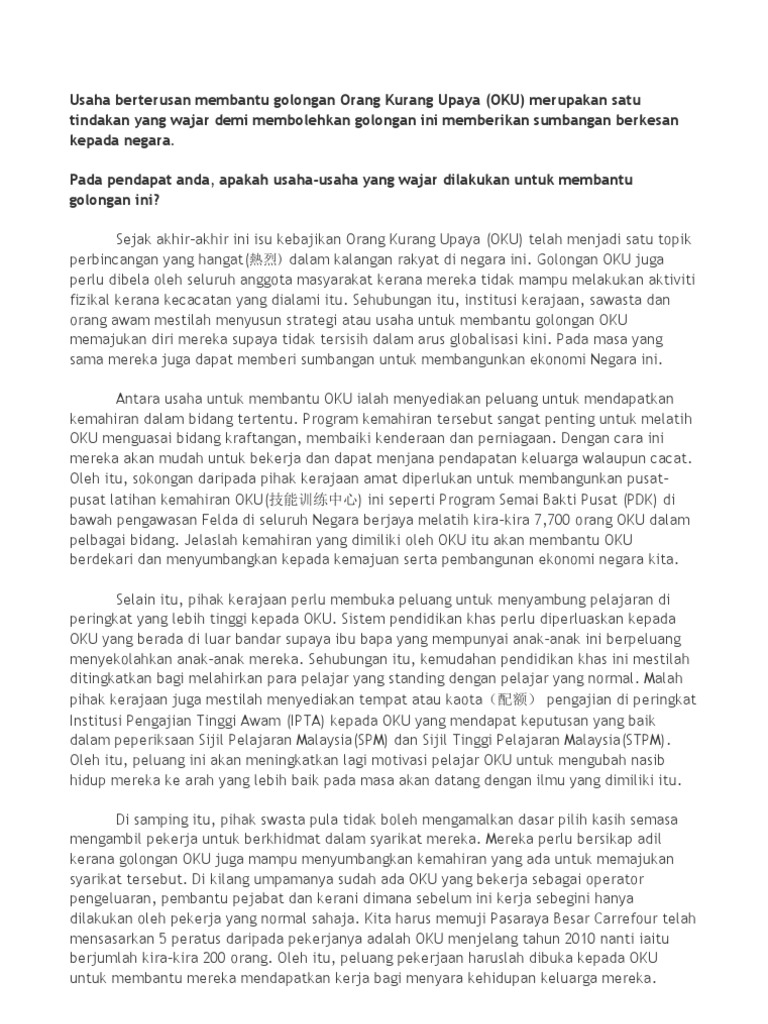 Related : Kurang Upaya In English - OKU: Kelebihan Penggajian Pekerja Orang Kurang Upaya di ... : Most faithful to the original..